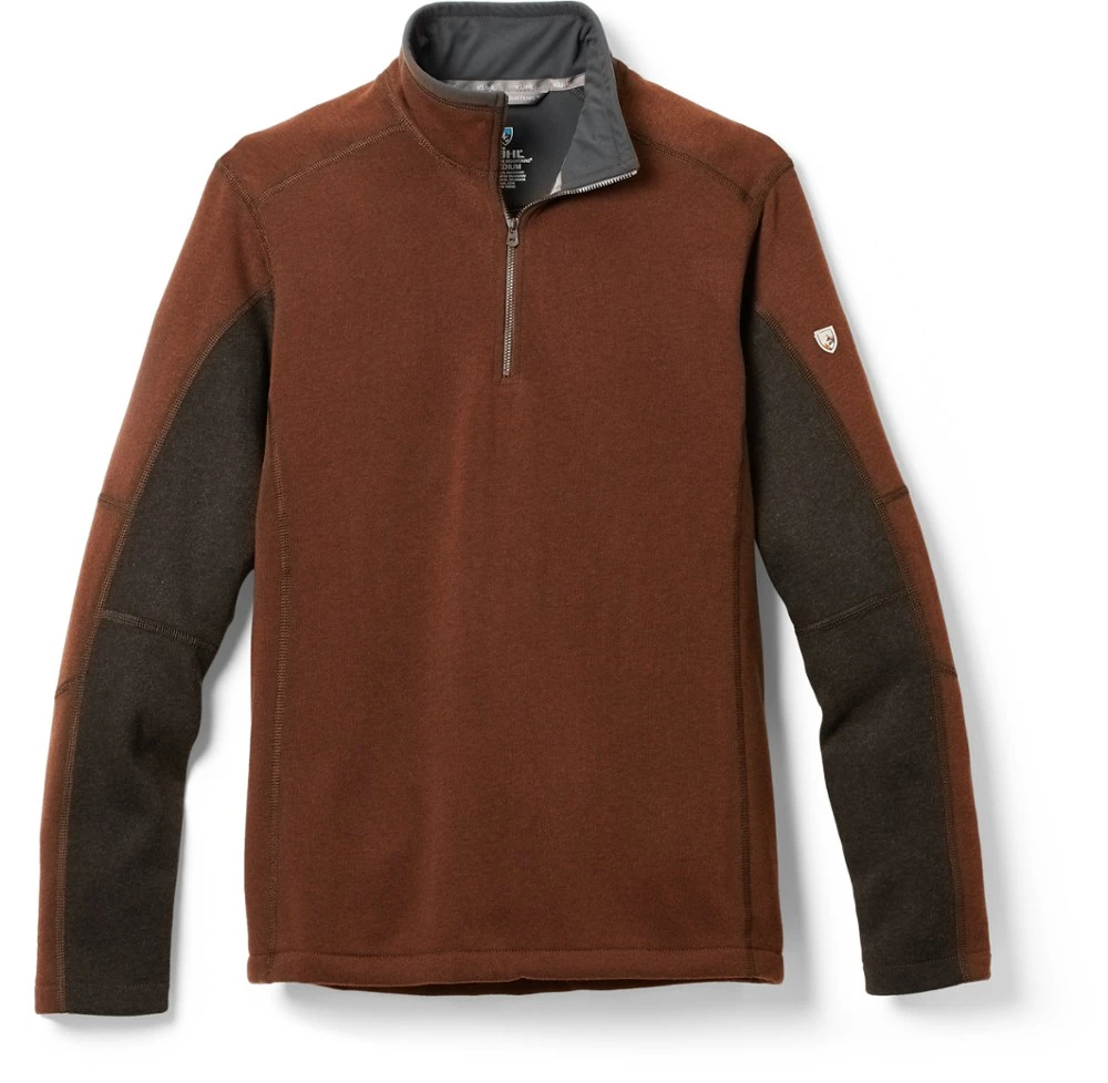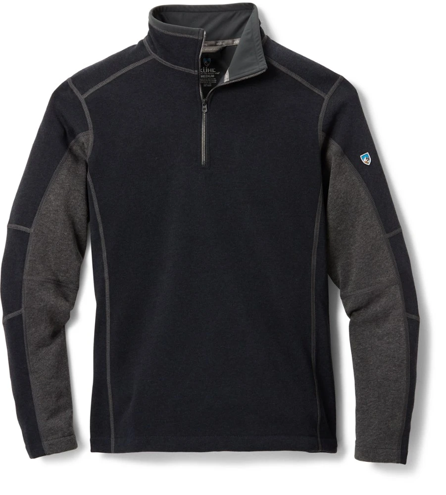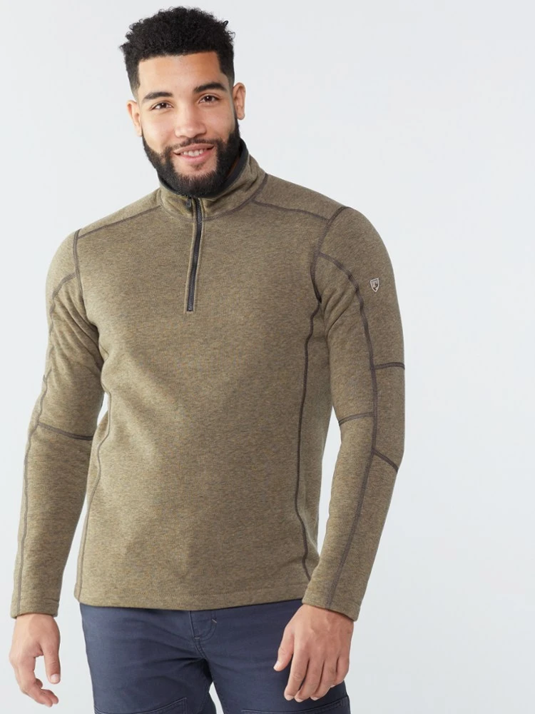 Hit the trail or head into town on a cold day in comfort when you wear the soft and warm KUHL Revel Quarter-Zip fleece sweater for men.
