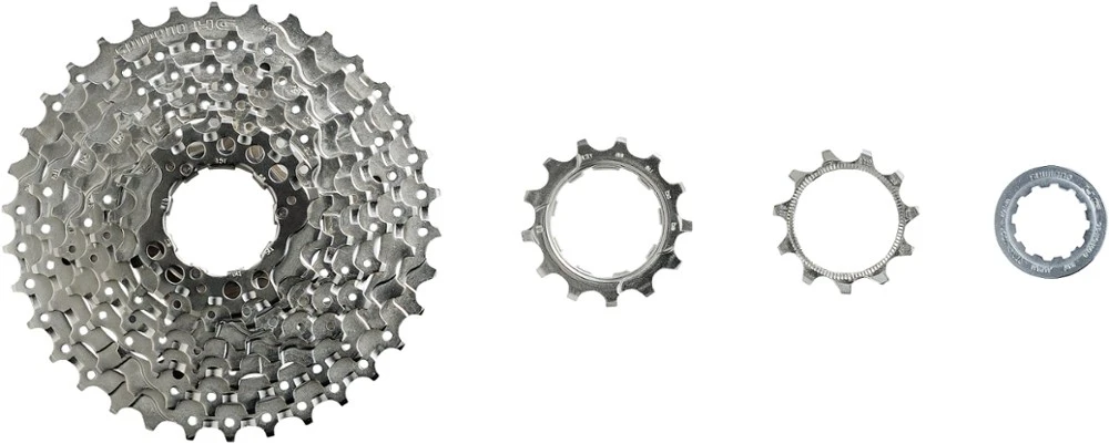 - Hyperglide (HG) technology guides the chain (not included) quickly and directly from one cog to the next without override